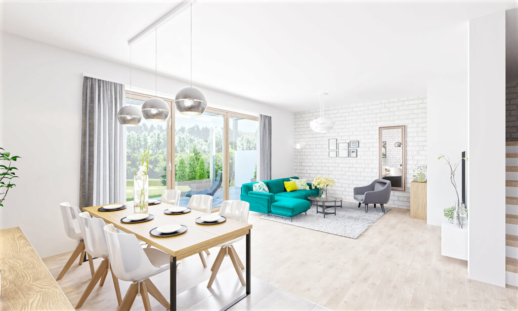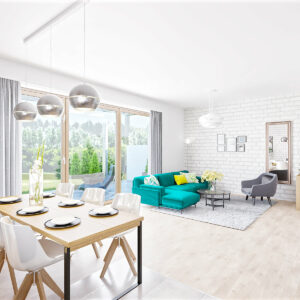 Każdy dom ma 132,3 m² powierzchni użytkowej i wyróżnia się funkcjonalnym podziałem na trzy strefy: gospodarczą, dzienną oraz sypialnianą. Komfortową przestrzeń możesz dowolnie zaaranżować, dostosowując ją do indywidualnych potrzeb.